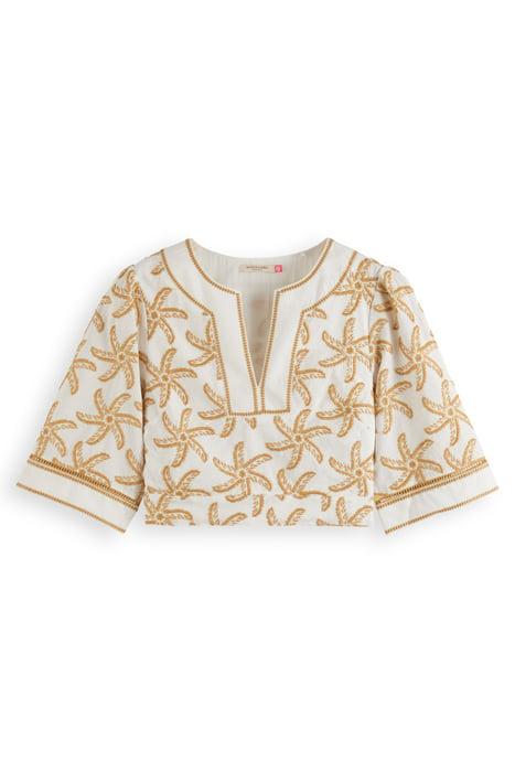 EMBROIDERED LINEN CROP TOP STARFISH EMBROIDERY