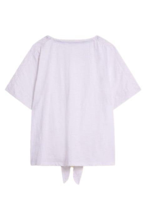 EMBROIDERED TIE HEM TOP BRILLIANT WHITE