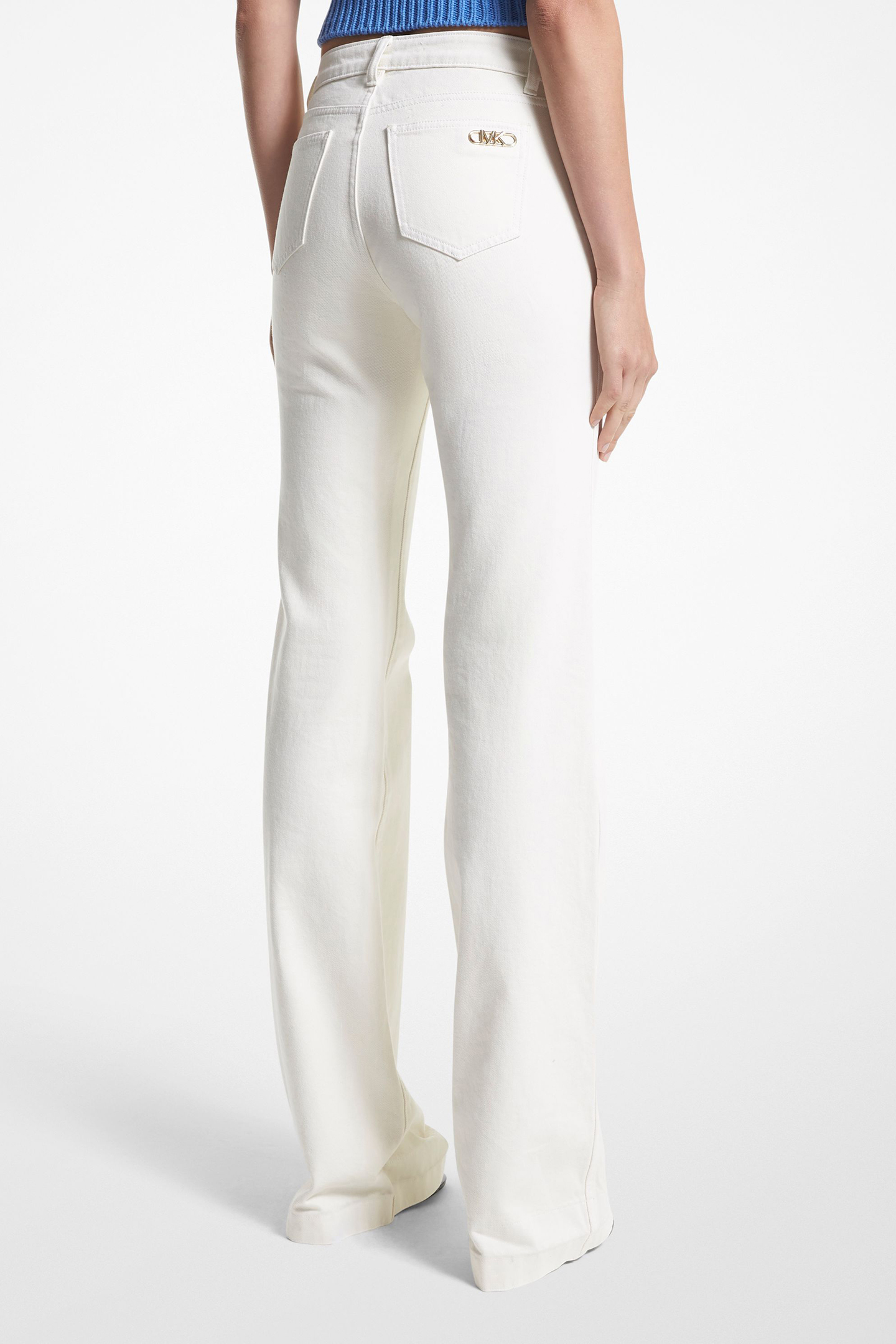 FLARED DENIM JEANS WITH CHAIN BELT IN WHITE