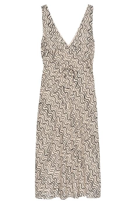 V-Neck Dress With All-Over Design And Drawstring Around The Waist/ Model Iris Is 1.76M Tall And Wears Size 36/ Designed In Amsterdam. Made In China