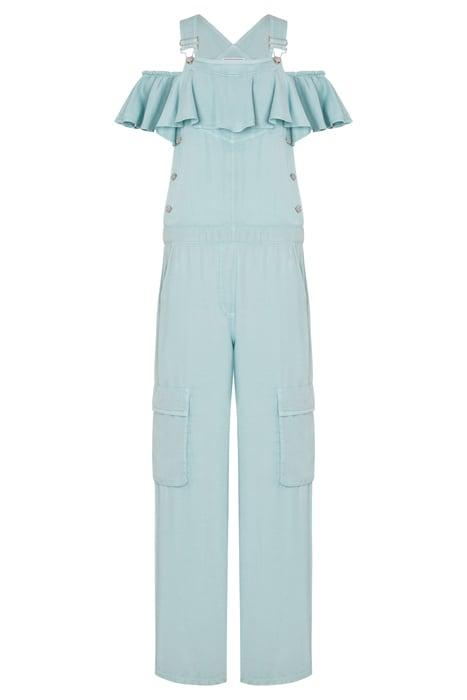 Garment-Dyed Lyocell Dungarees With Ruffles, Metal Buttons And Cargo Pockets.