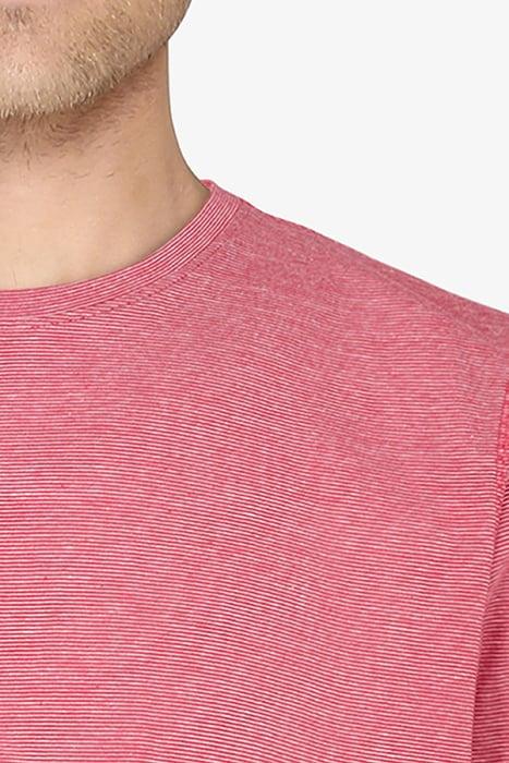 The Gavin New Stripe T-Shirt Is A Top-Notch Addition To Any Wardrobe, Fashioned In 100% Pure Cotton. Its Defining Feature Is The Sophisticated Jet Red Color That Guarantees A Stylish And Bold Statement. Adorned With Stripes, It Blends Comfort With A Trendy Outlook, Promising A Wear That Is Both Relaxing And Fashionable.