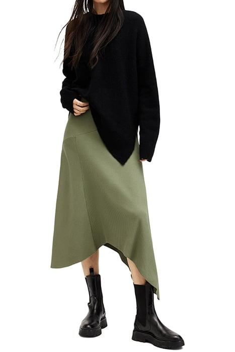 Gia Skirt Grass Green. With a contemporary silhouette and a Green hue, this Midi Skirt brings a fresh yet timeless perspective to everyday dressing. Pair it with your favorite essentials for an effortlessly curated look.