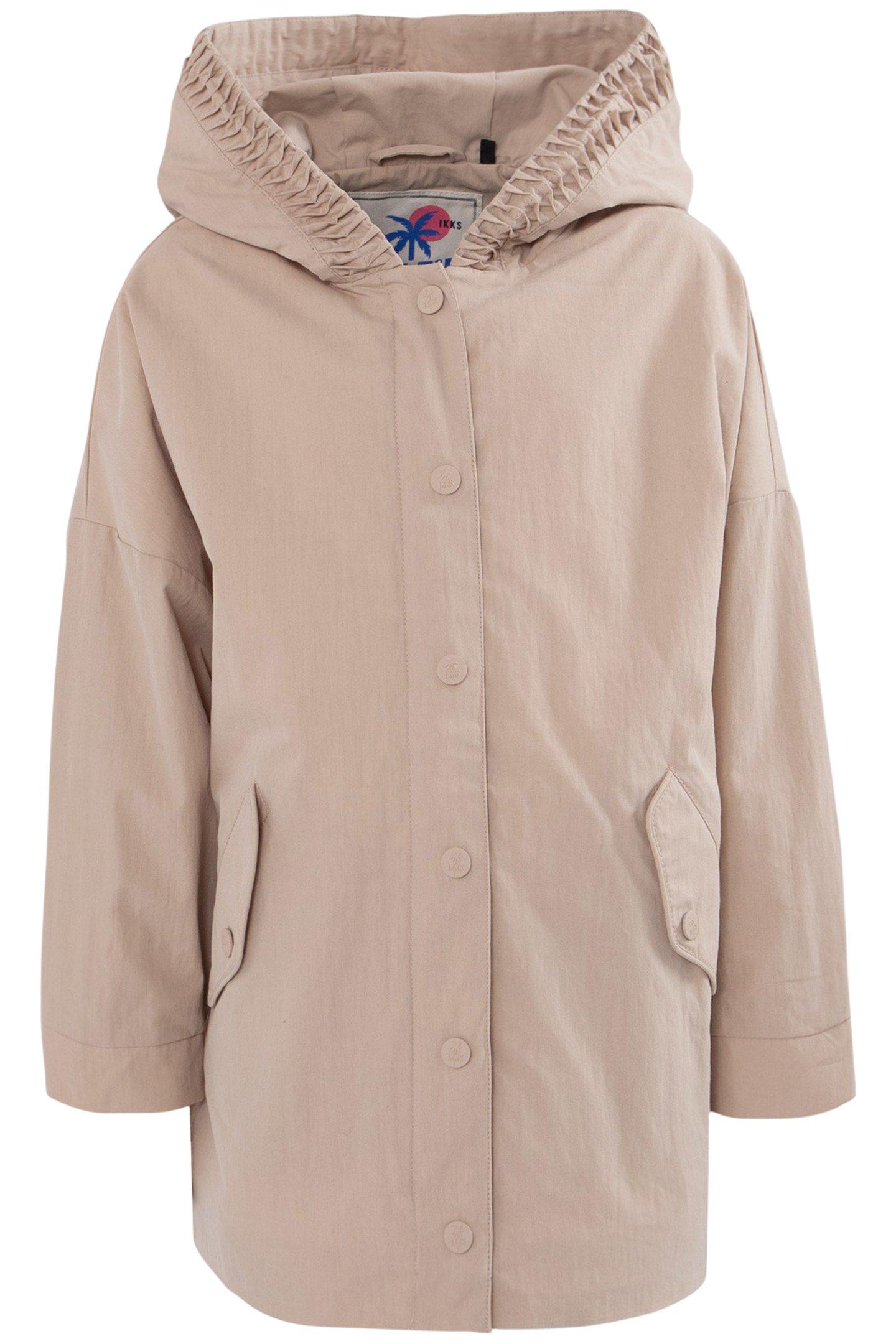 GIRLS' BEIGE TRENCH COAT WITH DECORATIVE DETAIL ON HOOD