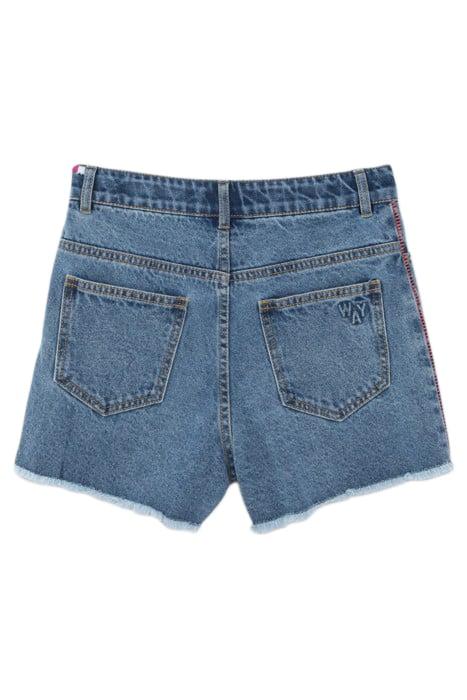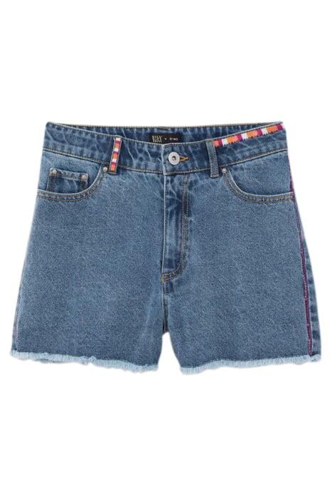 GIRLS’ BLUE WATERLESS DENIM SHORTS, EMBROIDERED DETAIL