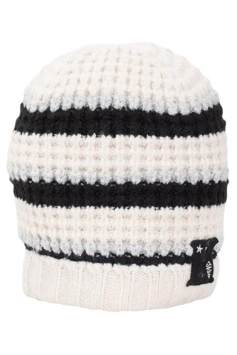 GIRLS’ ECRU STRIPED LUREX KNIT BEANIE COTTON