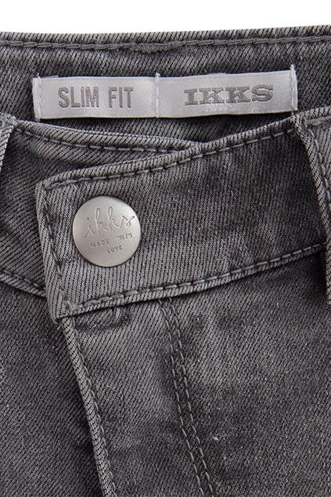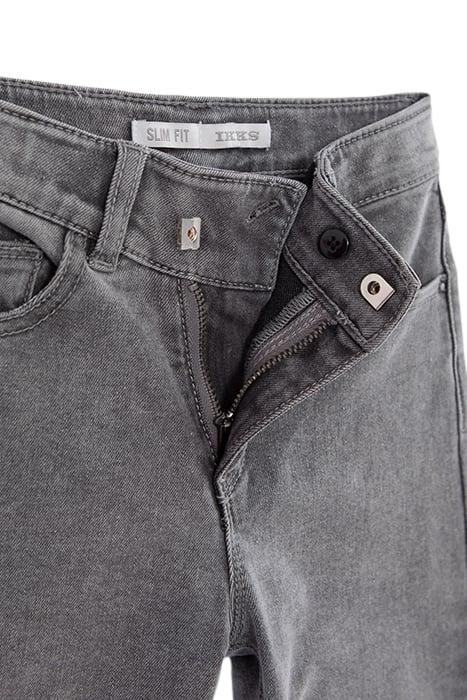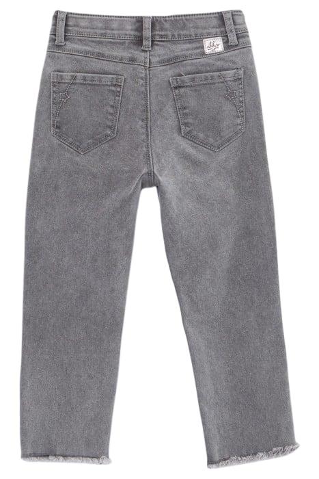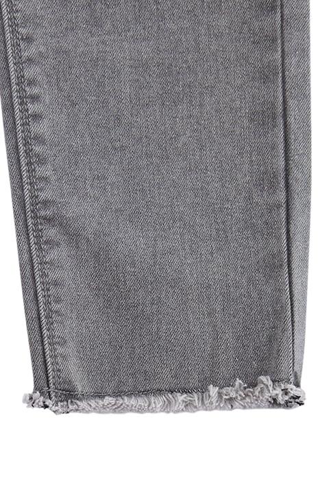 GIRLS' GREY SLIM JEANS WITH ASYMMETRIC ZIP & FRINGED CUFFS