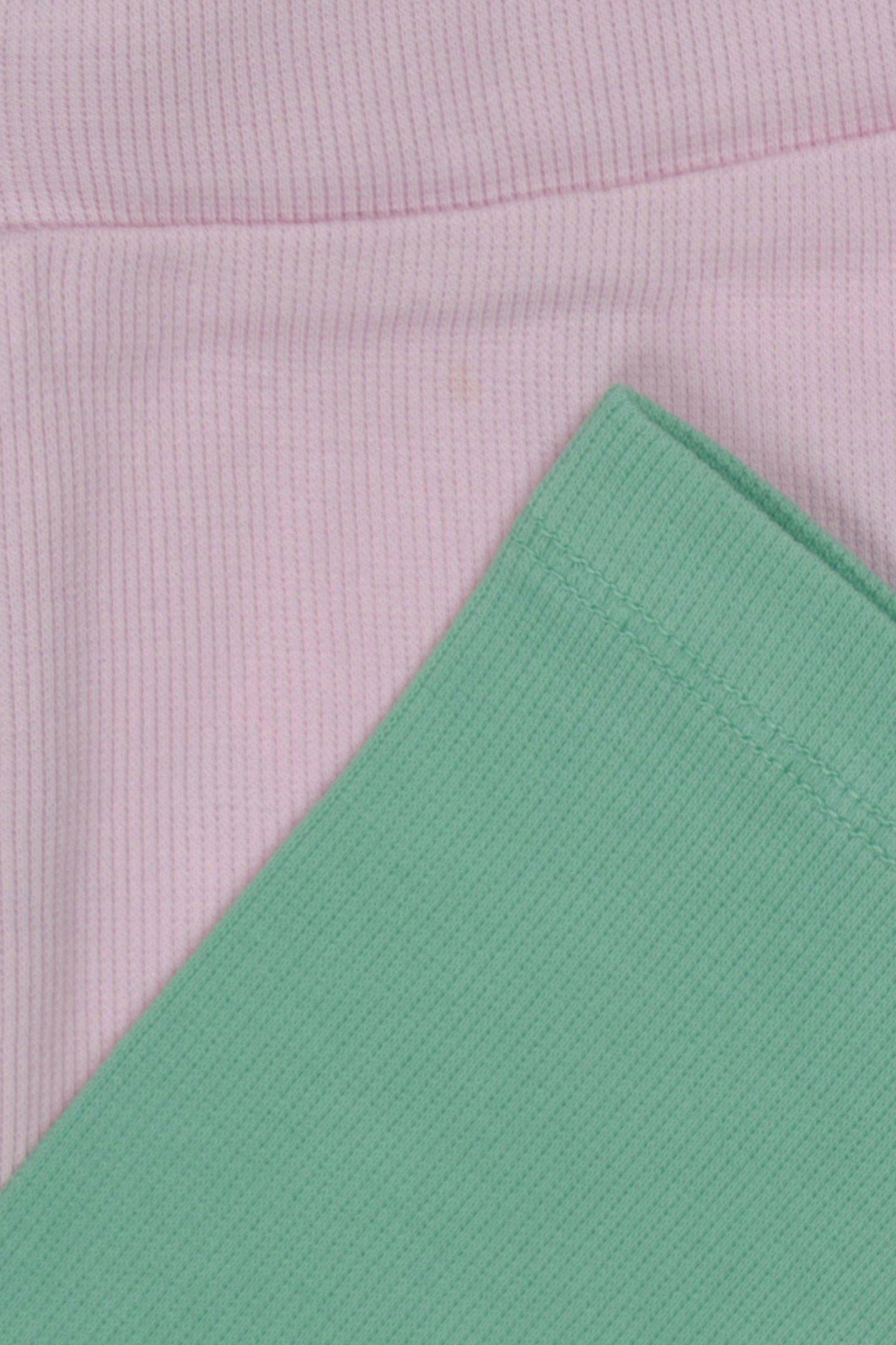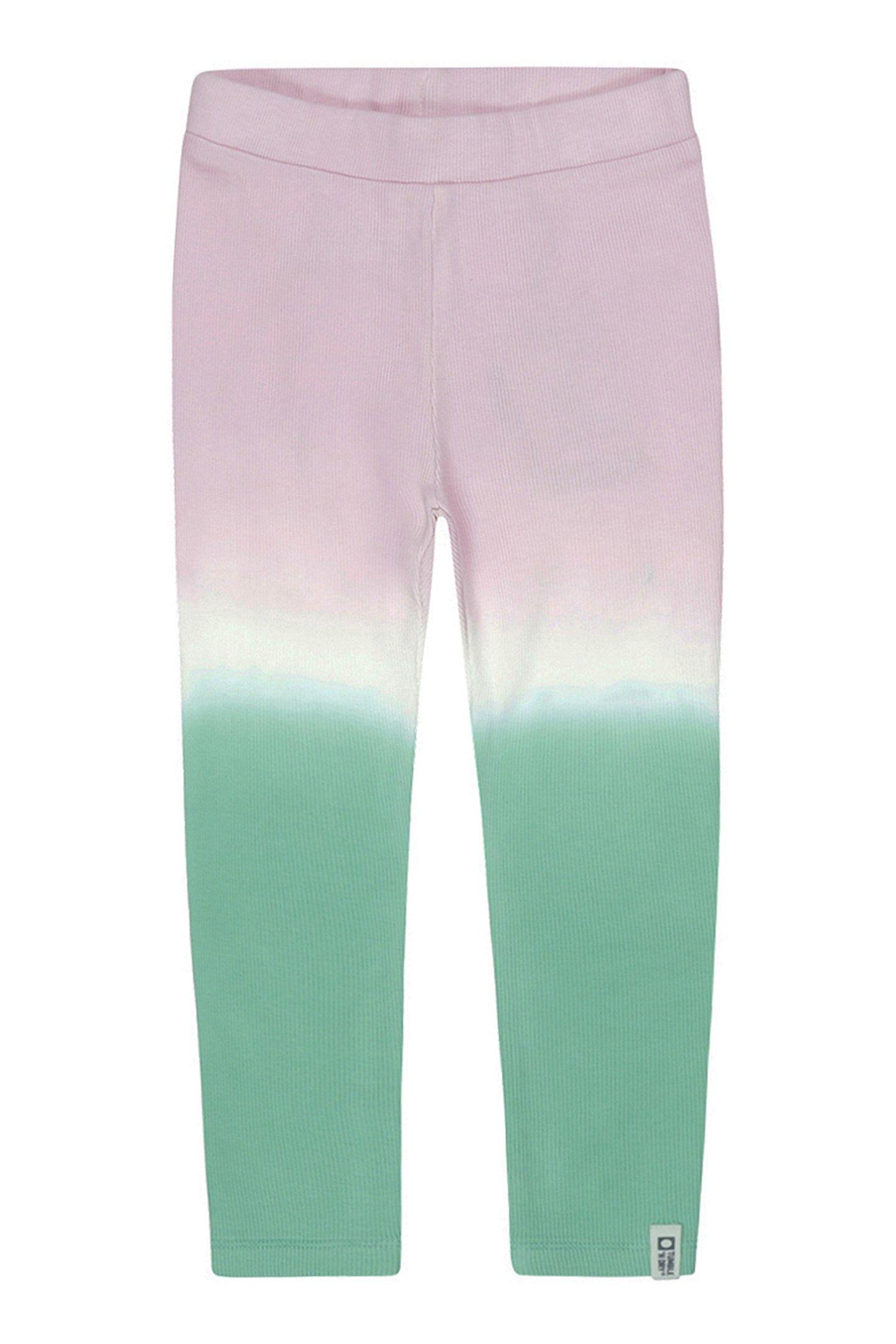Summer vibes! These leggings are a real eye-catcher. Made of organic cotton, which makes it super comfy. The dip dye overflow ensures that every item is unique. Choose from purple with yellow or green with pink and match up with your favorite statement T-shirt. Ready to go!