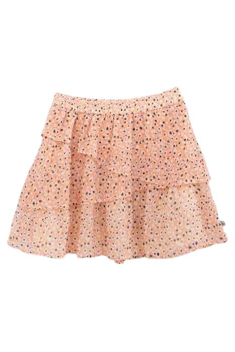 GIRLS' PEACH SHORT SKIRT WITH FLOWER TACHIST PRINT