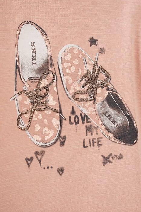 GIRLS’ PINK EMBROIDERED LACE-UP TRAINERS T-SHIRT