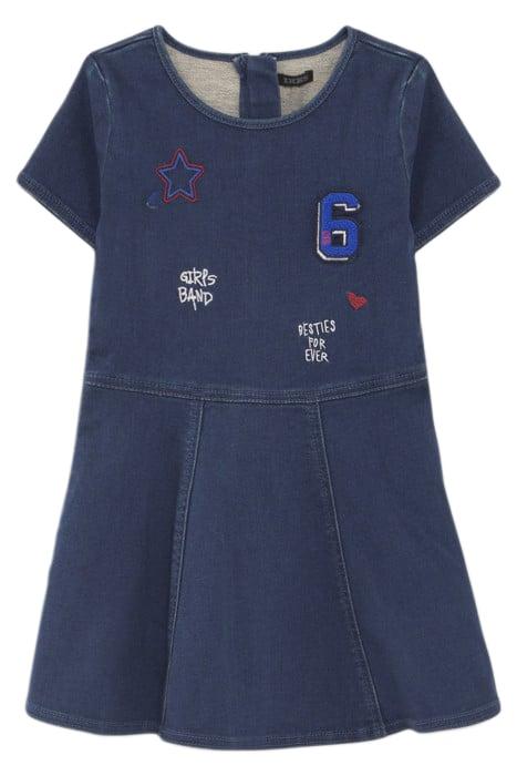 GIRLS’ RAW DENIM EMBROIDERED SKATER DRESS