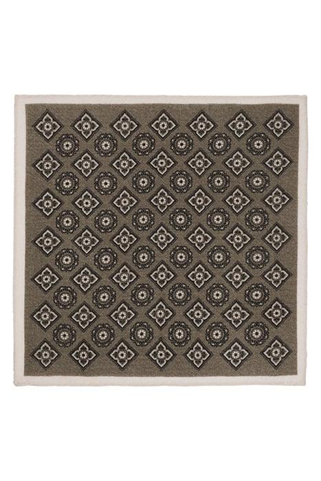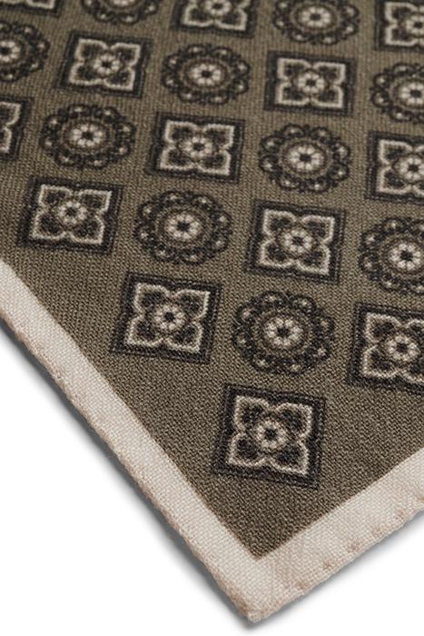 This Green Pocket Square Is Made From Pure Wool From The Italian Mill Mantero With A Geometric Flower Design.