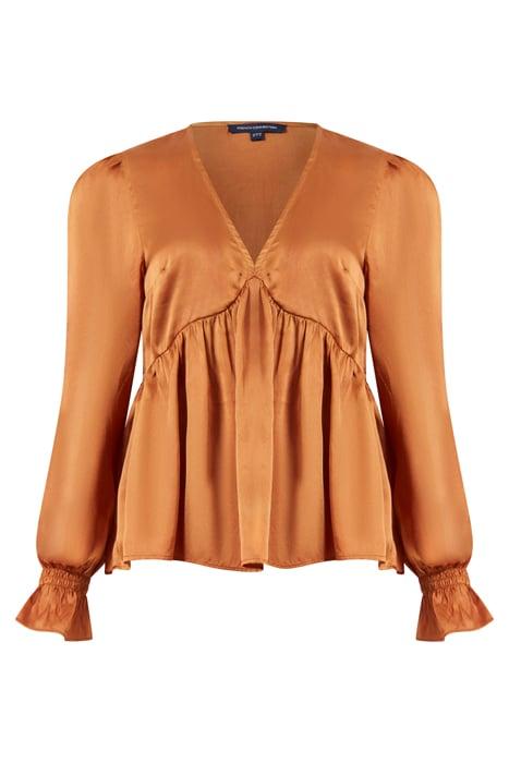 INU SATIN V-NECK EMPIRE TOP HONEY BRONZE