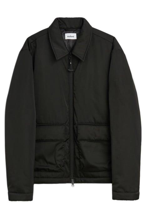 Jamie Is A Boxy-Cut Padded Utility Jacket. Two Front Flap Pockets With Invisible Magnetic Closure And Additional Side Openings. Inner Chest Pocket. Ribbed Hidden Storm Cuffs. 2-Way Ykk Coil Zipper Along The Center Front. Elastic Drawstring At Bottom Hem. Soulland Logo Rubber Badge Below The Center Back Neck.
