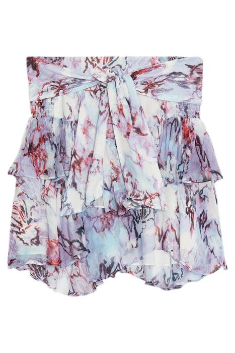 • Wm31Joric-Pur19#• Mini-Jupe À Volants#• En Mousseline Fluide Et Aérienne#• Imprimé Développé Par L'Atelier Iro#• Ceinture À Nouer#• Détails De Smocking Sur La Ceinture#• Matière Principale : 100% Viscose#• Fabriquée En Chine
