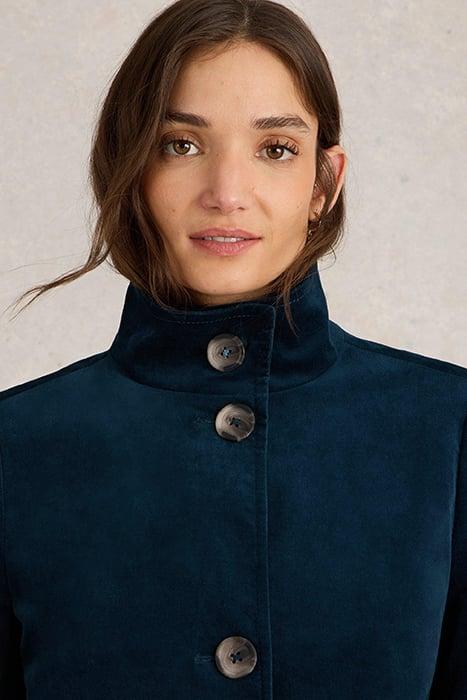 Karla Velvet Coat, Dark Teal, 98% Organic Cotton 2% Elastane, Wipe With Cloth Only