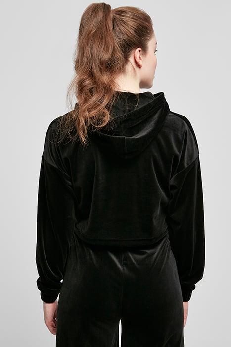 LADIES CROPPED VELVET OVERSIZED HOODY BLACK