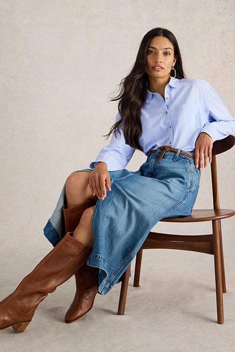 LAUREL LONGLINE COTTON SHIRT BLUE MULTI
