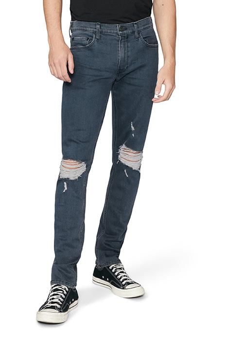 In our signature slim fit, this dark blue-grey pair has an authentic, worn-in look with destructed knees. The Lennox in Farley Destructed is made from PAIGE Vintage denim which takes all of the work out of breaking in your favorite pair of vintage jeans. We've combined authentic vintage washes with our famed comfort, fit and quality to create super soft jeans that feel perfectly lived-in from the very first wear.
