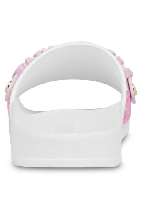LETTERING LOGO GLITTER POOL SLIDES WHITE