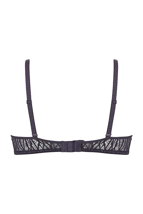 Push-up bra from Livera's Ironic line. This bra creates a beautiful cleavage and has a subtle jacquard pattern in the fabric and graphic lace in the side. Complete your set with the matching thong or shorty from the Ironic line!