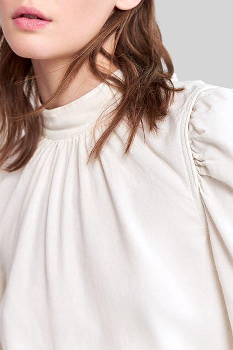 LIMESTONE ORGANIC COTTON BLOUSE, BUTTONED COLLAR
