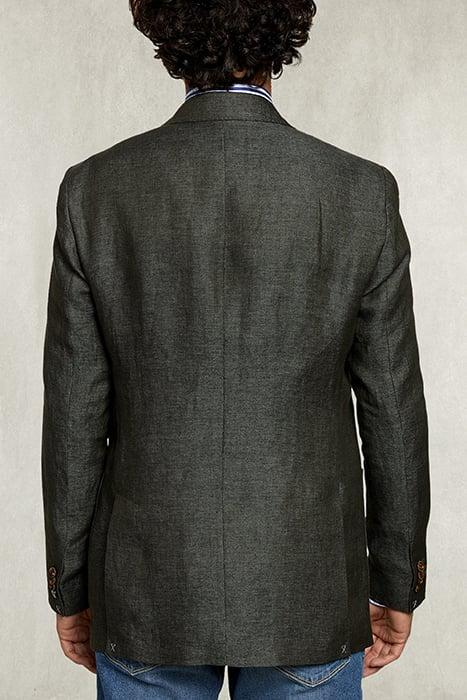 LINEN BLAZER APPLIED POCKETS KHAKI BLUE