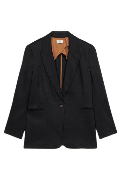 Blazer Jacket In Cool Linen Blend Fabric, Fastened With A Single Mottled Button, Front Flap Pockets.