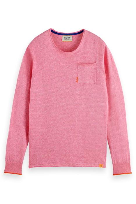 LINEN COTTON BLEND CREW NECK TROPICAL PINK