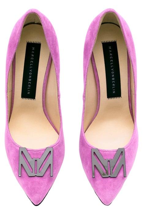 Velvet Coated Leather Pumps With M Icon Logo Buckle.