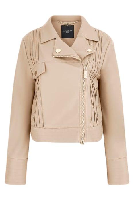 Chic, versatile, and undeniably stylish—the Lola Faux Leather Fawn Taupe & Biker Jacket Multi is your go-to for elevating any look.