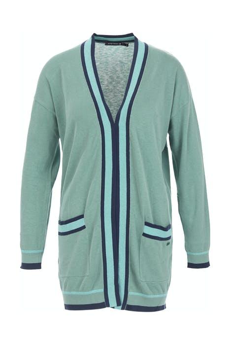 LONG CARDIGAN LS TRICOLOR STR PISTACHE