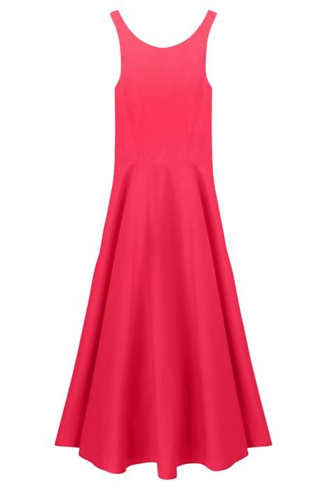 Long Cotton Poplin Dress, Halterneck With Elastic Straps Crossing At The Back, Side Zip Fastening, Flared Circle Skirt