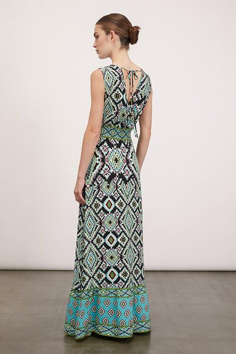 LONG DRESS WITH ETHNIC PATTERNED FLOUNCE BLACK