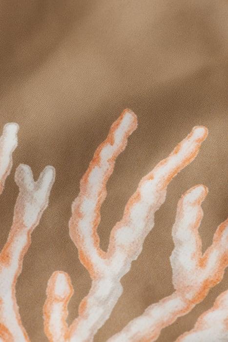 LONG LENGTH SWIM SHORT WITH A TAUPE CORAL AOP