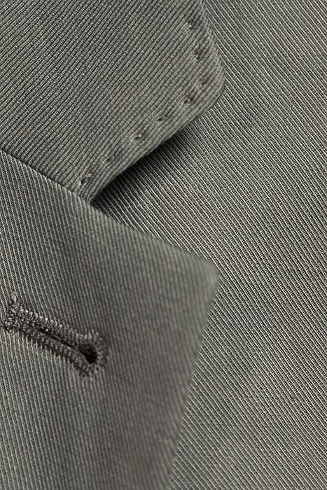 Regular fit tailored jacket. Thin padding over shoulders, li ght fusing over chest for softer tailored feel. Fully lined. 2 horn button closure. 2 Exterior jet pockets with flaps.2 interior chest pockets.