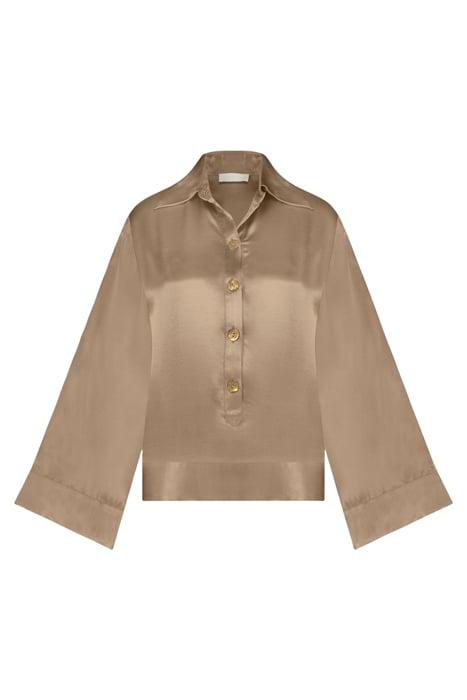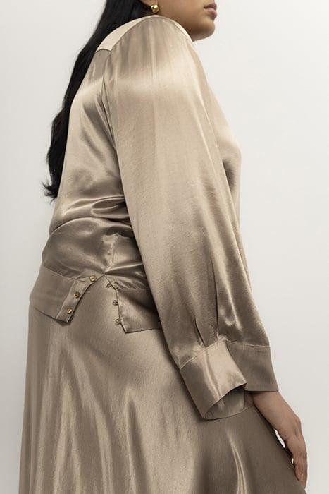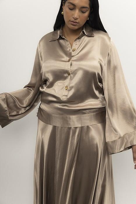 The Viveh Maple Shirt Has A Relaxed Silhouette With Long Sleeves And Wide Cuffs. It Has A Button-Down Placket And A Small Split On The Left Side That Can Be Opened And Closed With Buttons. Maple Is Made From A Delicate Rayon And Viscose-Satin Fabric With Matching Buttons. Pair With The Cedar Trousers Or Hazel Skirt For A Chic Matching Set. Treat This Item With Love And Care.