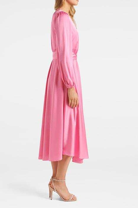 MARILYN SATIN WRAP MIDI DRESS PINK COSMOS