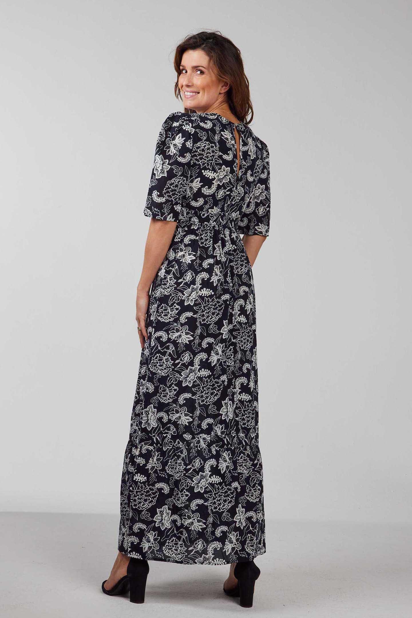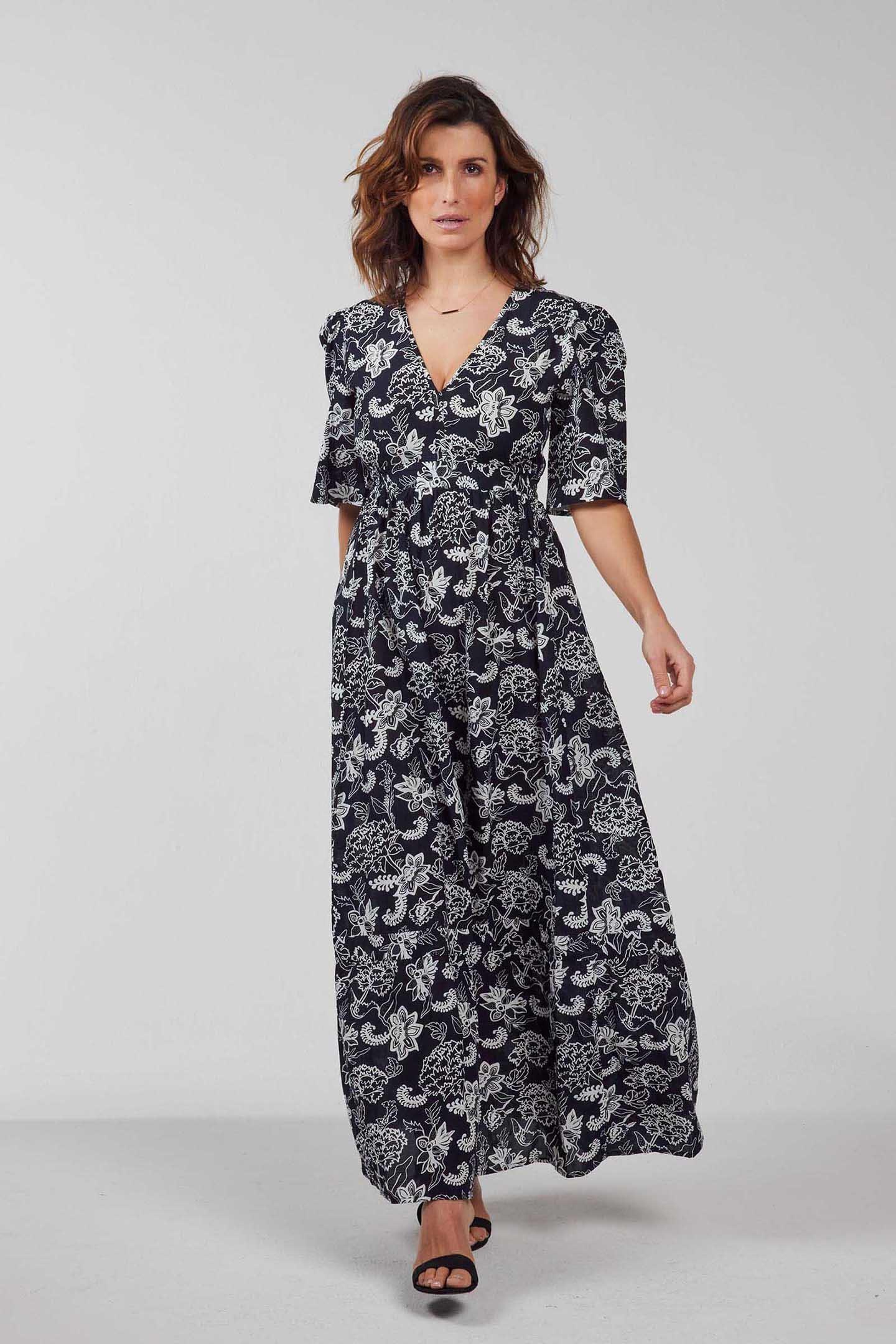 MAXI MAXI DRESS BUENO DARKBLUE WITH WHITE SENNA PRINT