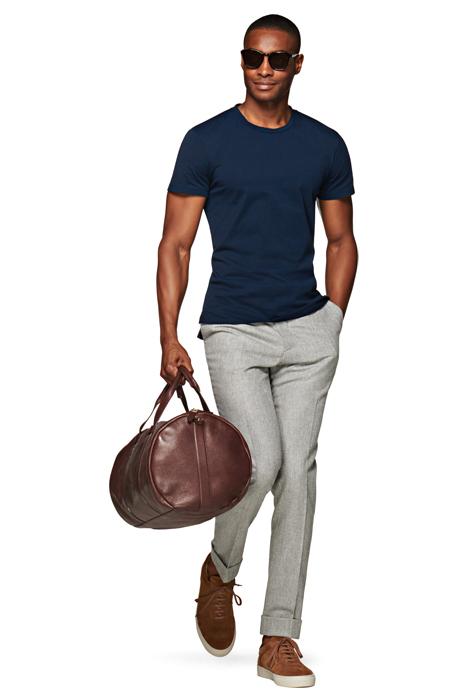 Versatile And Stylish, This Navy T-Shirt Is Cut With A Crewneck Collar From Pure, Sustainable Californian Supima Cotton, And Features A Split Hem And Longer Back.