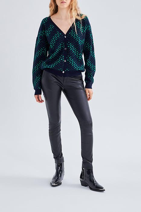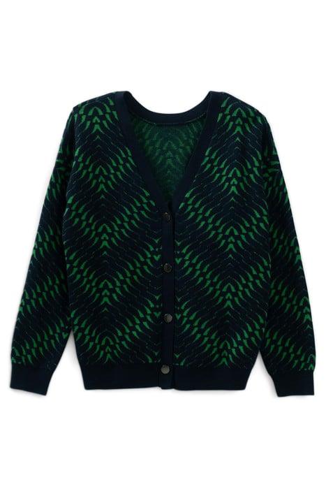 NAVY GEOMETRIC MOTIF JACQUARD KNIT CARDIGAN