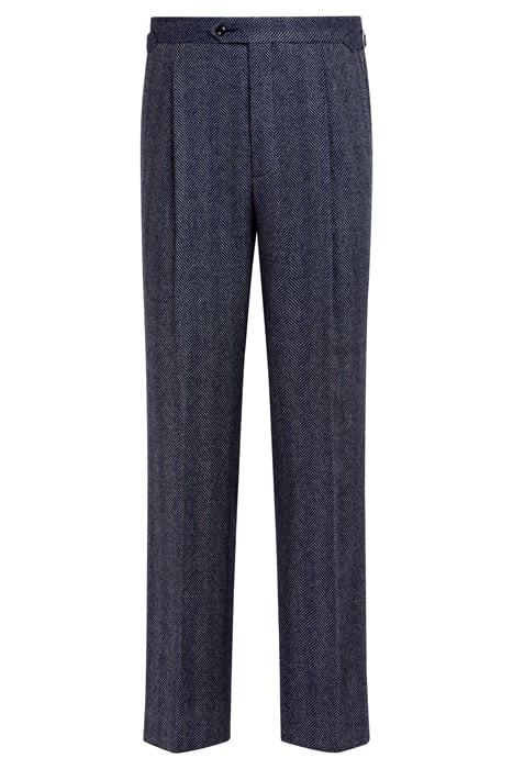 NAVY HERRINGBONE WIDE LEG STRAIGHT TROUSERS