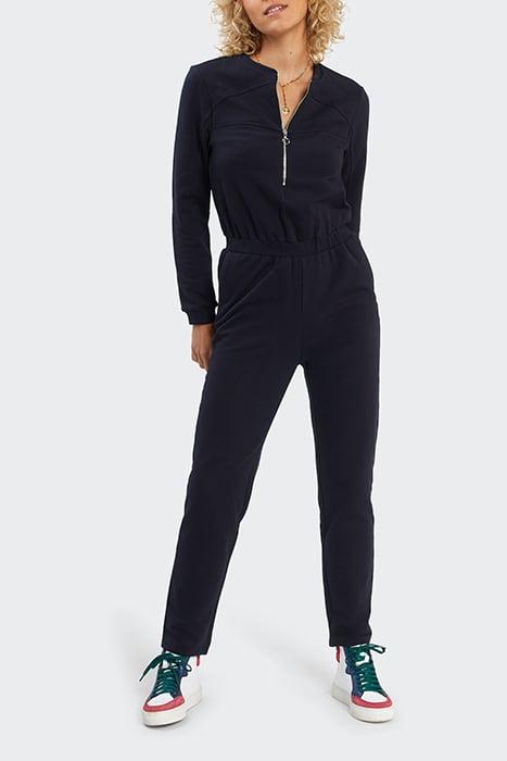 NAVY SWEATSHIRT FABRIC ZIPPED JUMPSUIT