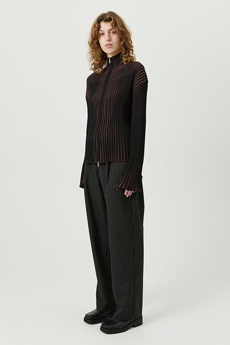 Nika Top Is A Long-Sleeved Top With A Mock Neck. Two-Way Ykk Zipper With Zipper Pullers At Front. The Fabric Has A Radial Rib Knit Structure