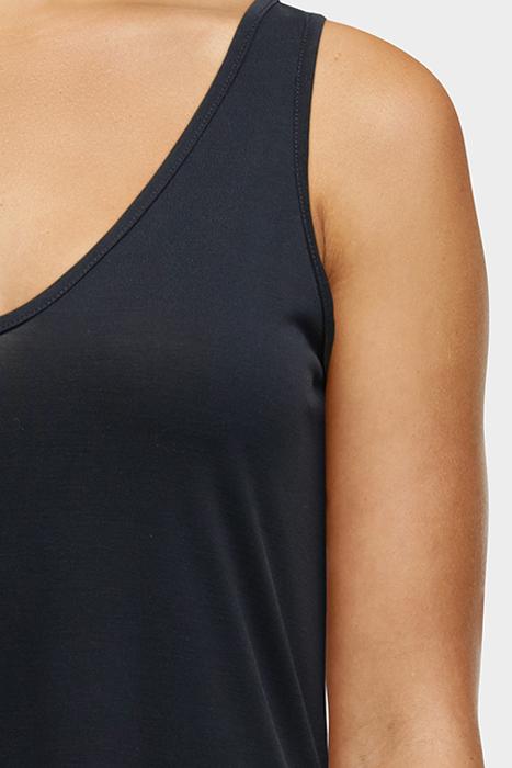 Modern Singlet With A Round Neckline From Femilet. The Singlet Is Made Of A Mix Of Modal And Polyester And Has A Cupro Look And Feel. The Singlet Has A Round Bottom.