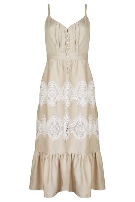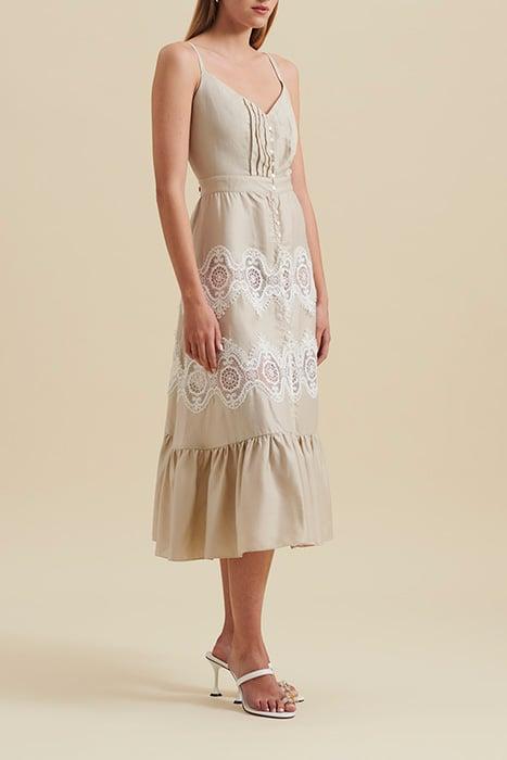 Sleeveless Long Embroidered Dress With A Ruffled Hemline