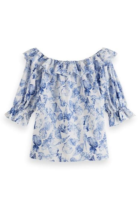OFF SHOULDER TOP WITH RUFFLES SHELL BATIK BLUE