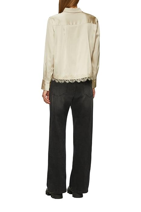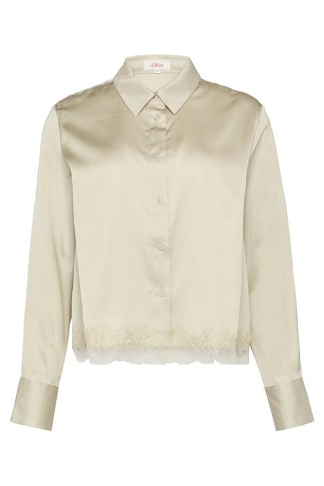 Back part: yoke; Closure: button placket; Collar: shirt collar; Details: lace, pleat; Fabric: satin; Fit Overall: relaxed fit; Material: polyester blend; Occasion: casual; Quality: flowing; Sleeve: cuffs, long sleeves; Style: elegant, glamour, feminine, fashionable