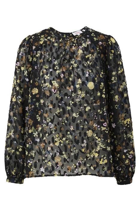 Blouse: Achterpand: Cut-out, Langere zoom aan de achterkant, Details: Plooitjes, Eigenschap: Fijn, Luchtig, Gestructureerd, Gelegenheid: Feestelijk, Hals: Hooggesloten, Ronde hals, Materiaal: Textiel, Motief: Met motief all-over, Mouwen: Manchetten, Pofmouwen, Pasvorm: Regular fit, Sluiting: Knoop, Stijl: Modieus, Stof: Weefsel, Zoom: Afgeronde zoom.