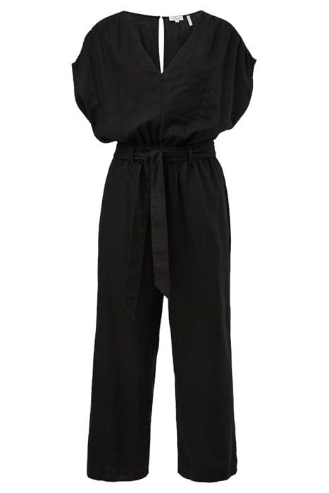 Back: Cut-Out, Leg Length: Culotte, Details: Elastic, Feature: High Quality, Airy, Neck: V-Neck, Material: Linen Blend, Sleeves: Oversized Shoulders, Sleeveless, Fit: Relaxed Fit, Closure: Button, Style: Fashionable, Pocket: Slit Pocket.